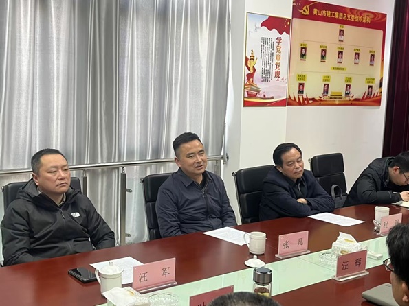 2月14日下午,黃山市住房和城鄉(xiāng)建設(shè)局黨組書記、局長(zhǎng)張凡帶隊(duì)蒞臨黃山建工集團(tuán),開展新春走訪調(diào)研活動(dòng),為企業(yè)送祝福、問需求、解難題、鼓干勁。市住建局三級(jí)調(diào)研員程鋼,黨組成員、市建筑管理處主任汪軍,辦公室、建管科有關(guān)負(fù)責(zé)同志陪同調(diào)研。 黃山建工集團(tuán)董事長(zhǎng)汪輝、副董事長(zhǎng)葉金發(fā)、總經(jīng)理方哲源及集團(tuán)領(lǐng)導(dǎo)班子成員參加調(diào)研座談會(huì)。